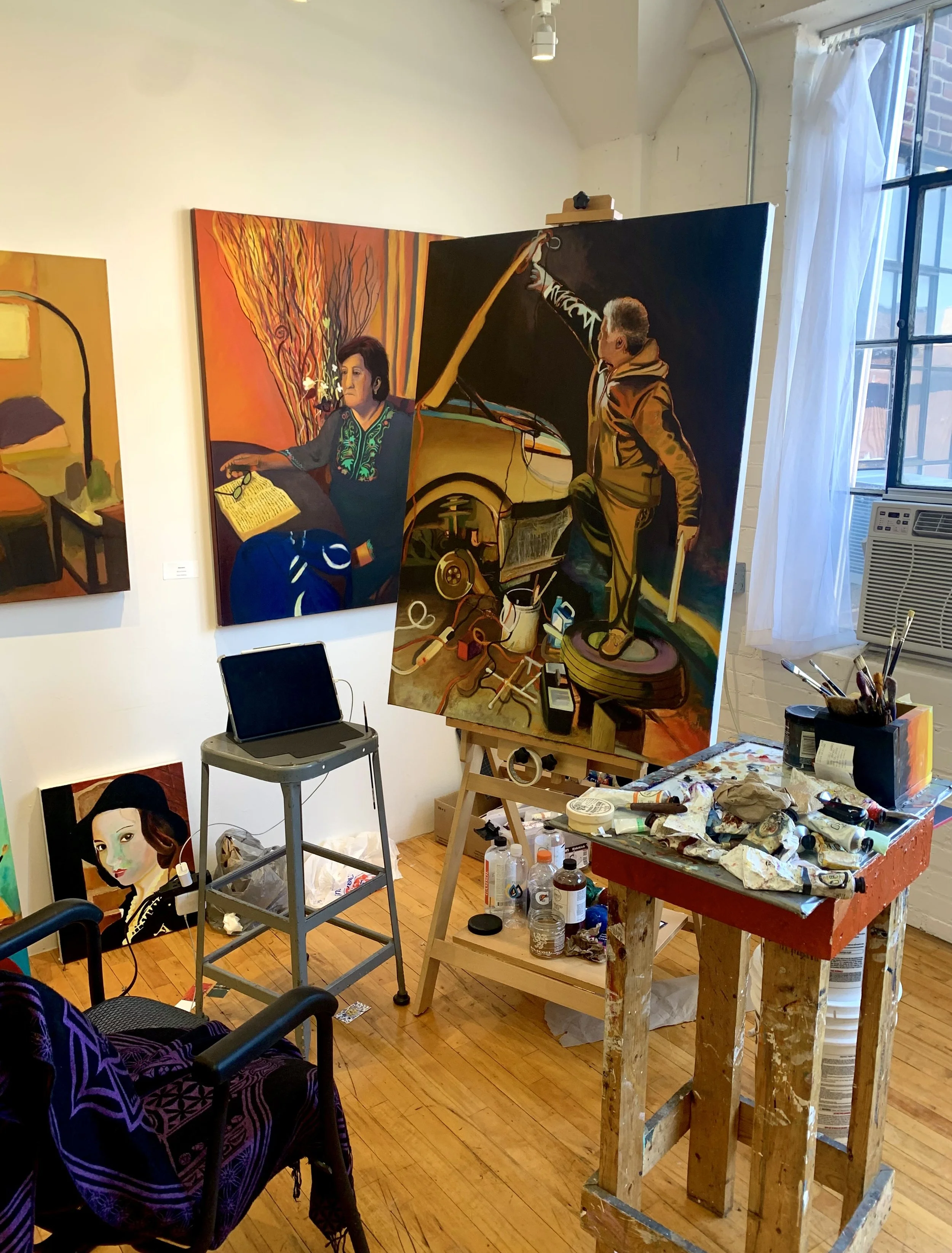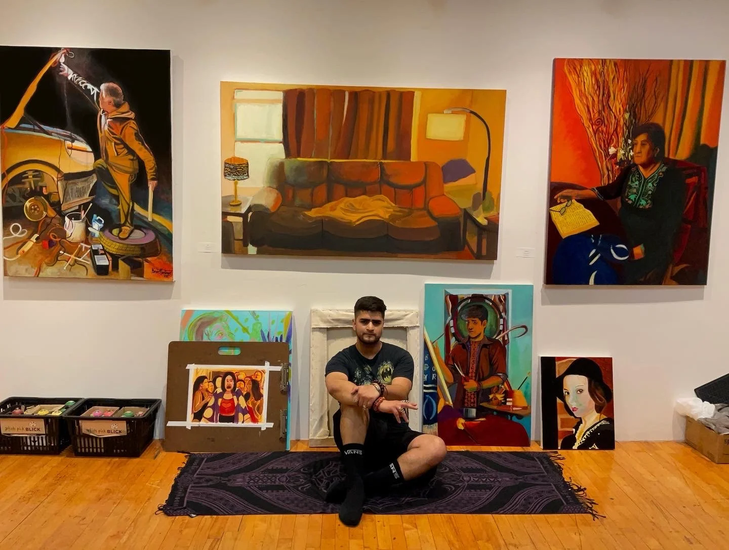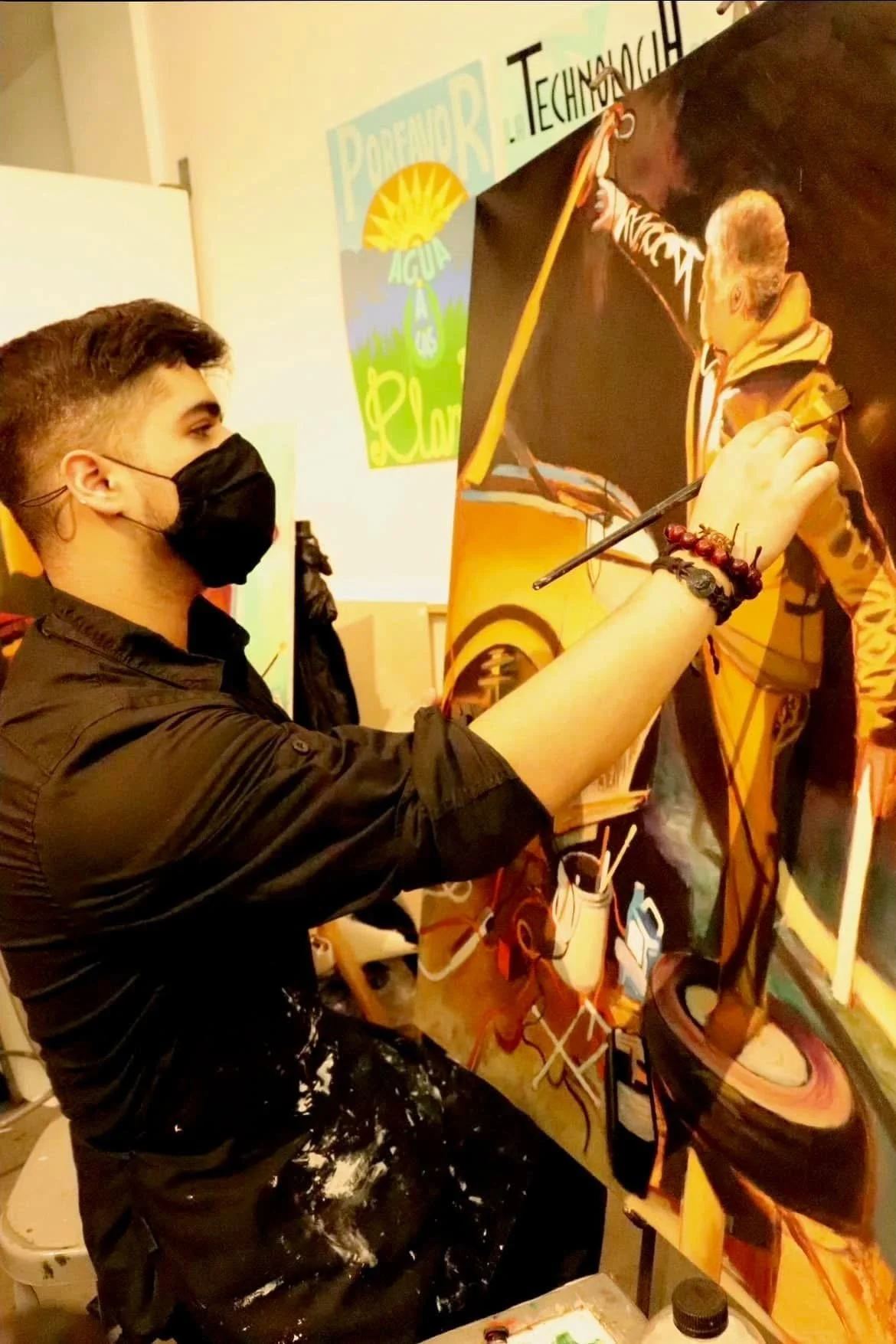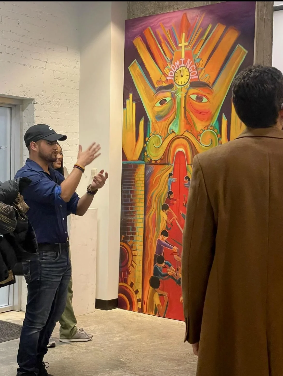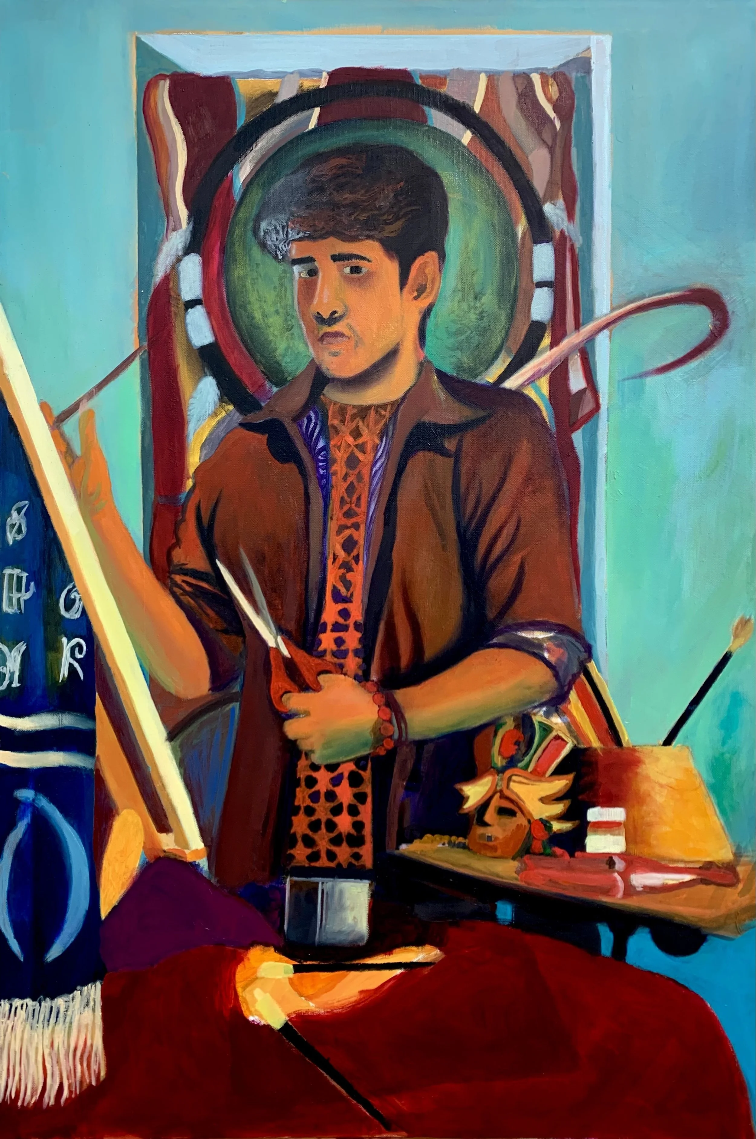 Kevin Zaid Martinez, is a multidisciplinary, Minneapolis based painter, teacher, and public muralist. He primarily works with oil paint to document and paint portraits of community leaders and role models. Art has been a passage of healing for him as a survivor of abuse, discrimination, and cancer. He explores trauma theory and how one can turn grievances into “manifestations of warmth.” Zaid’s color palette is warm and fiery, pertaining to the idea of “home” He evokes a colorful and metaphorical fire that survivors obtain in a process of anger, solitude, and a passion for finding happiness in the smallest of objects.